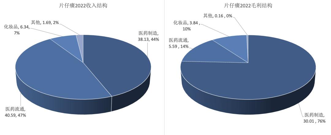 图:片仔癀2022年收入结构与毛利润结构;资料来源:公司公告,36氪