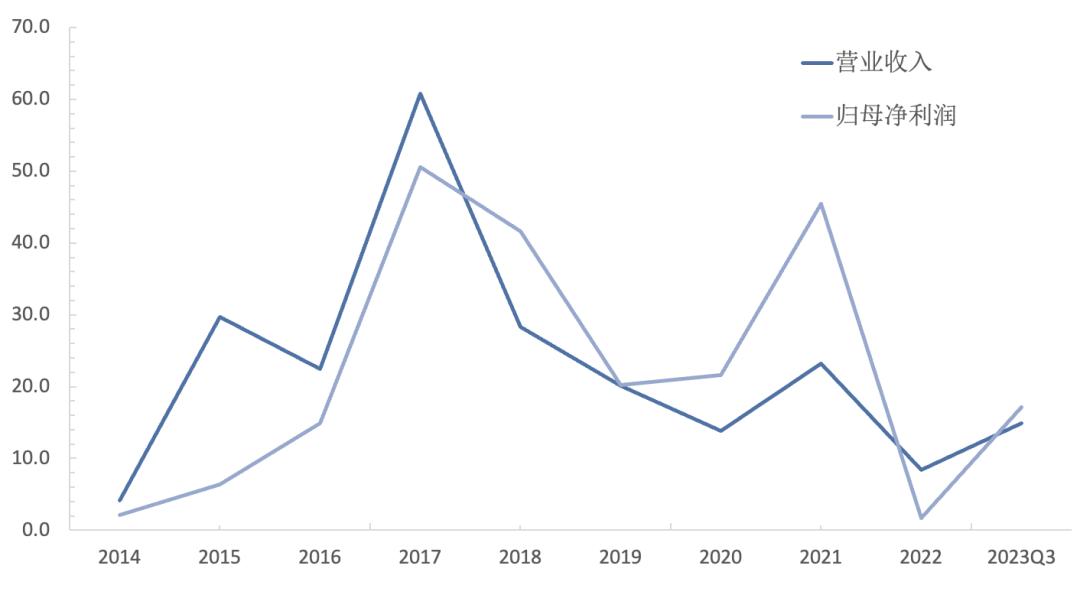 图:片仔癀收入和归母净利润;同比增速;资料来源:wind,36氪