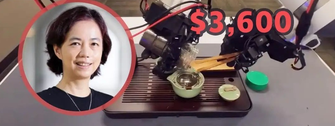 它拥有一双灵巧手,就比如泡茶,先是拧开瓶盖,再拿茶镊将茶叶挑进杯中,并放回原位。