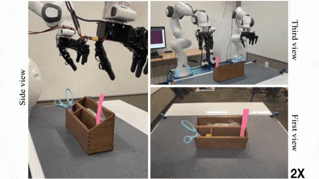先收集双手的人体动捕数据,然后进行完全自主的策略部署。