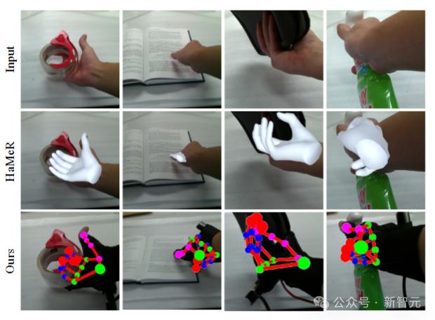 HaMeR在严重遮挡的情况下表现不佳,要么无法检测到手,要么无法准确估计指尖位置。相比之下,DC在这些条件下表现出良好的鲁棒性。