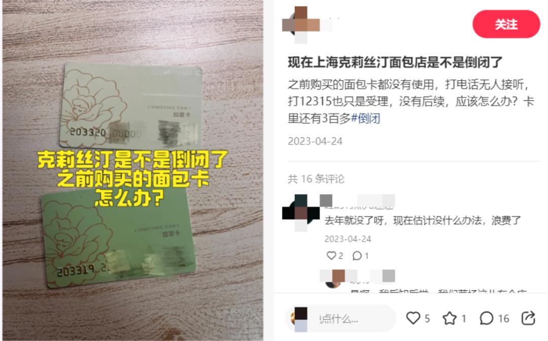 卡里的额度还没用完,店先倒闭了(图源:小红书)