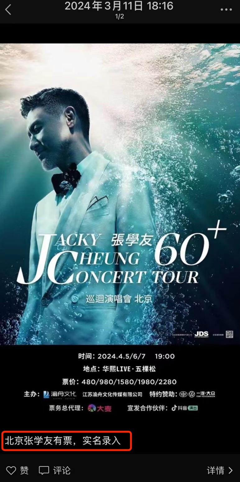 其一,有众多金曲榜身的老牌歌手,依然是带票王者。最具代表性的是张学友的演唱会,去年张学友启动了“60+”世界巡回演唱会,今年北京场、上海场开售即售罄,并且在二级市场溢价出售。不过张学友演唱会的热度一定程度上也与去年《繁花》的热播有关,live版的《偷心》在社交平台上广泛传播,很多粉丝表示“这一首就可以值回票价”。