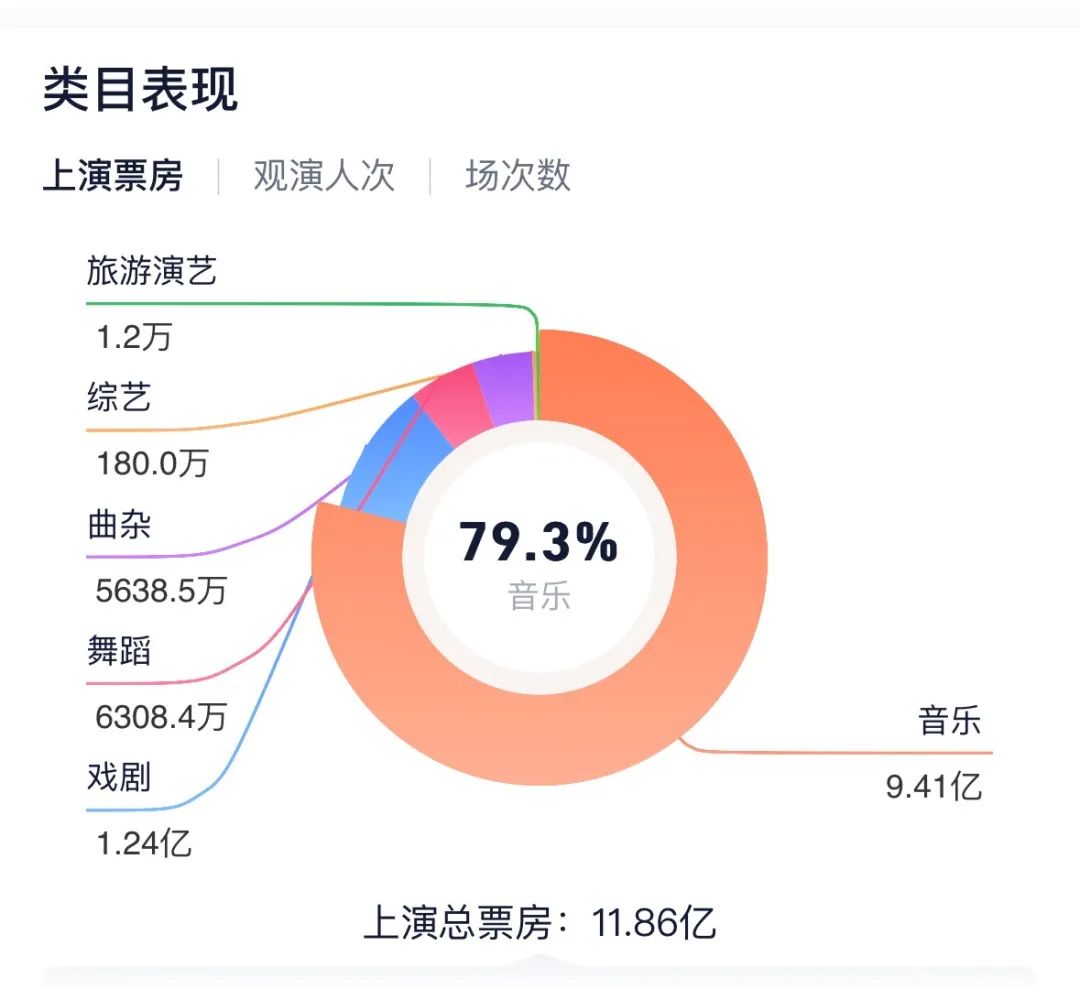 但从目前的行业动态来看,不论是演出场次还是热度,大有超过去年的势头。据不完全统计,今年3月到5月至今,已经有50场以上的音乐节官宣。灯塔专业版数据显示,截至3月14日,今年音乐演出相关票房达到9.41亿元,占比总演出票房的79.3%,音乐演出观演人次达到191.2万。