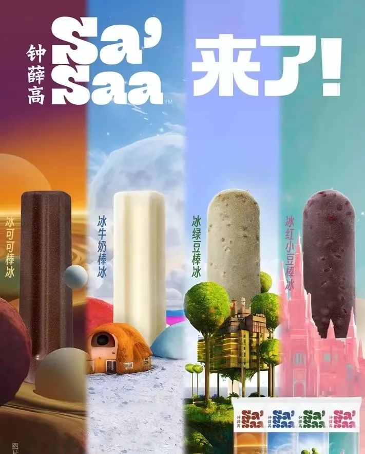 回顾钟薛高短暂而又如过山车般起伏的"糕"生,会发现新消费品牌的沉疴在其中悉数体现。但当完美日记自建工厂、搭建供应链时,当喜茶、奈雪开始大规模降价行动时,当元气森林要慢下来和传统经销商做朋友时,钟薛高还沉浸在“消费升级”的盲目预期中,受困于要不要打破人设做低价的犹豫中。2022年9月,元气森林举办经销商大会时,唐彬森以“浪子回头再出发”为主题进行演讲,他表示:“长期来看,依托经销商发展我们的销售网络才是正道,所谓的去中心化的互联网思维是毒药,是我们对销售理解不够。”对于依靠线上销售渠道崛起的品牌来说,想做线下生意,该补的课、该交的学费、该走的路永远无法绕过去,相对元气森林而言,钟薛高的反应显得有些迟缓。直到2023年3月,钟薛高才开始拓宽价格区间生产低价产品Sa’Saa系列,定价3.5元,对标传统的冰棒。与此前的产品相比,低价的主要原因是原料中牛奶含量大大减少,以水、全脂乳粉来代替原本配料表前两位的牛乳和稀奶油。
