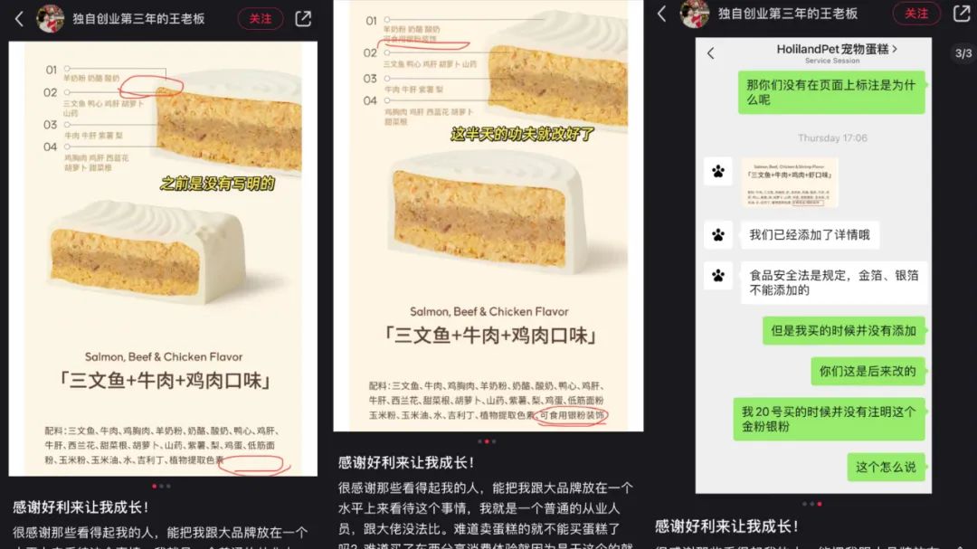 Holiland Pet小程序上线没多久,就有一位博主在社交平台上发“避雷帖”,称购买了一块该品牌的宠物蛋糕,收货后发现蛋糕表面有银粉,与宣传图不符。