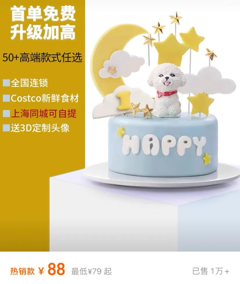 某销量较高的品牌旗舰店宠物蛋糕。(图/电商App截图)