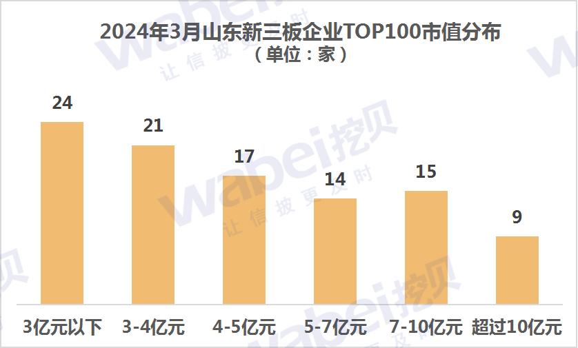 挖贝研究院梳理出2024年3月山东新三板企业市值TOP100(以下简称:“榜单”或“TOP100”),9家企业市值超过10亿元,26家企业冲击北交所。