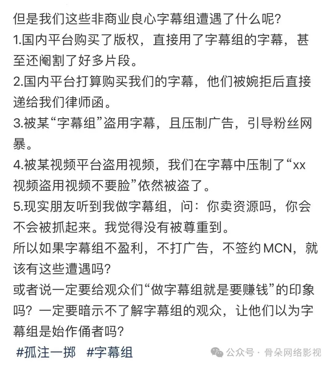 少了为爱发电的“保护伞”,舆论也不再像之前一样一边倒的同情,更让许多不明就里的观众留下了字幕组都会盈利的印象,让许多依旧为爱发电苦苦坚持的字幕组倍感心酸。
