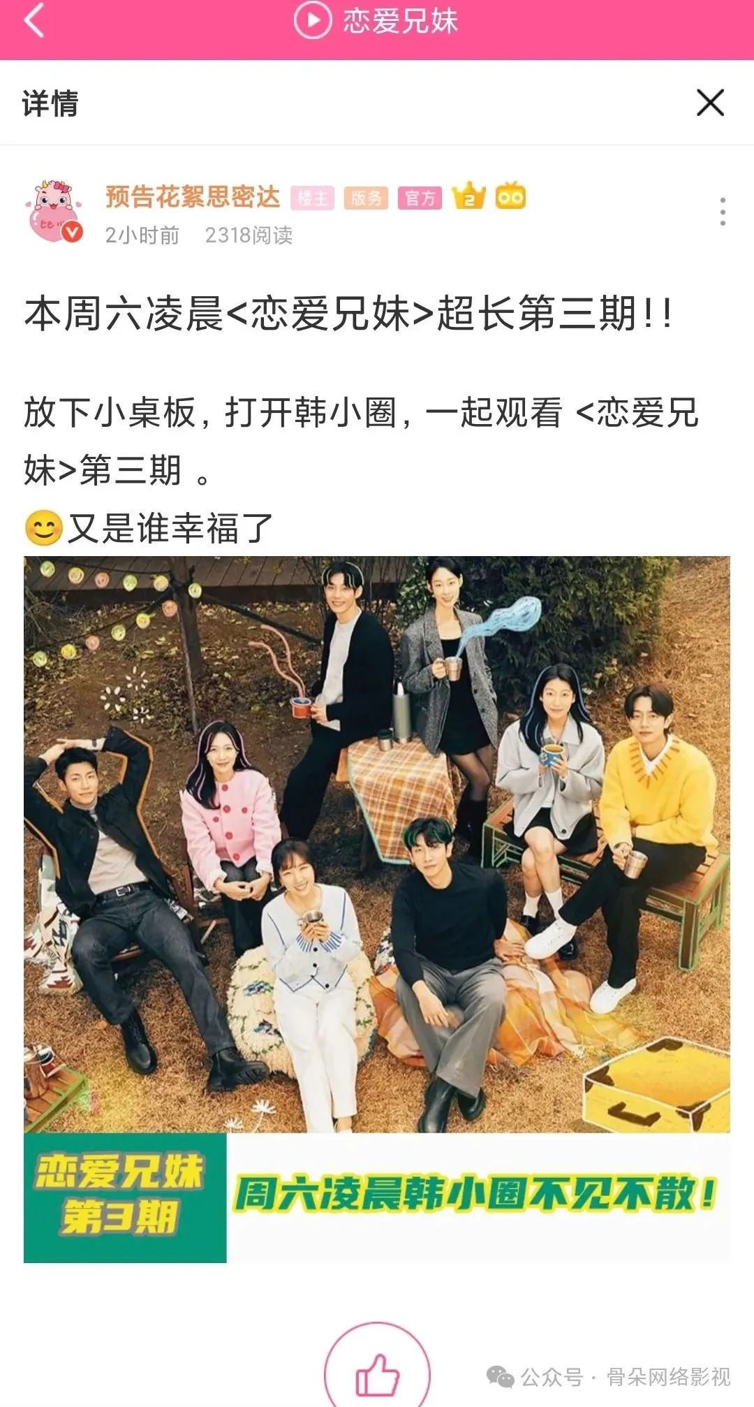 近期热度超高的韩国恋综《恋爱兄妹》周五晚上刚刚更新长达三小时的第三期,韩小圈周六凌晨已出了精翻中字。