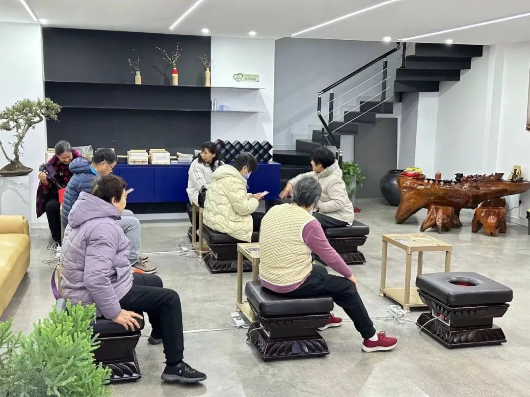 我们还会做一些安全相关的设备,老人一个人在家的时候,如果碰到意外,就会自动报警。社区的老人能来我们机构唱歌、打乒乓球、打麻将,做艾灸、喝茶,画画……我们还设置了一个小食堂,我们提供食材,老人们凑在一起做饭、聊天,就是帮助他们丰富生活,缓解孤独。