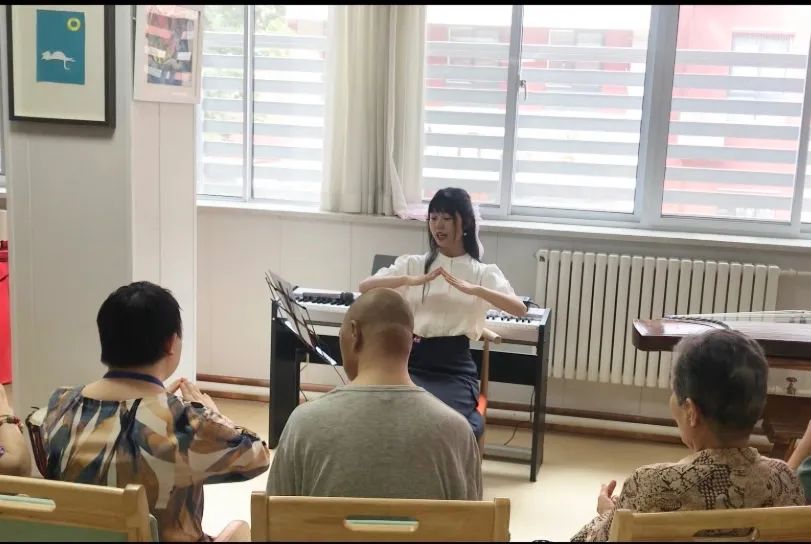 因为我毕业前考了心理咨询师的证,在养老院的时候我也会负责一些相关的工作,我记得有一个患有阿尔茨海默症的老人,他记忆力不太好,后来我就在音乐课上,尝试用音乐的方式和他沟通,一开始他没什么反应,后来他慢慢地也能跟上节奏,有了反应,能做一些舞蹈动作。我就发现这个方法也是奏效的,当时特别开心。