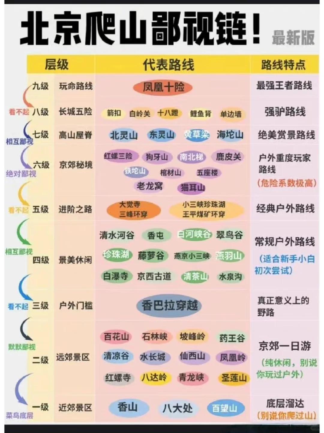 在网上流传的一份“北京爬山鄙视链”中,香山被排在垫底的位置。
