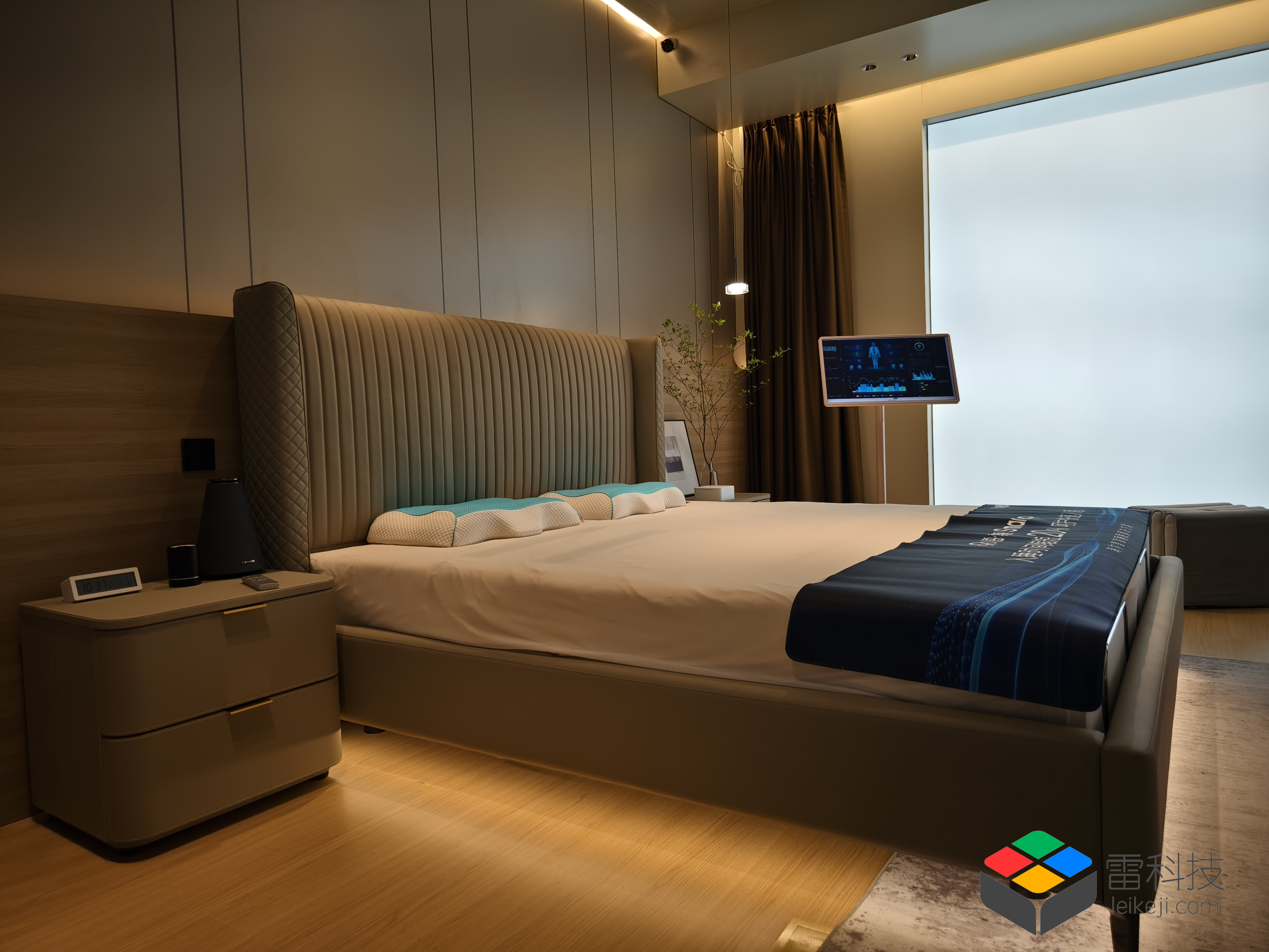 该床可搭配海尔智能睡眠检测仪、AI智适应床垫、AI智眠枕等设备,全方位监测用户的身体数据。