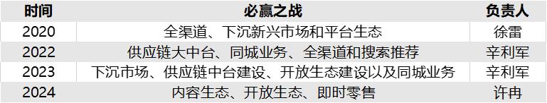 2021年徐雷升任京东集团总裁,辛利军接替其位置被委任为京东零售CEO。辛利军上台后,京东零售的战略重心有所调整,于是有了必赢之战2.0版本:供应链大中台、同城业务、全渠道和搜索推荐。