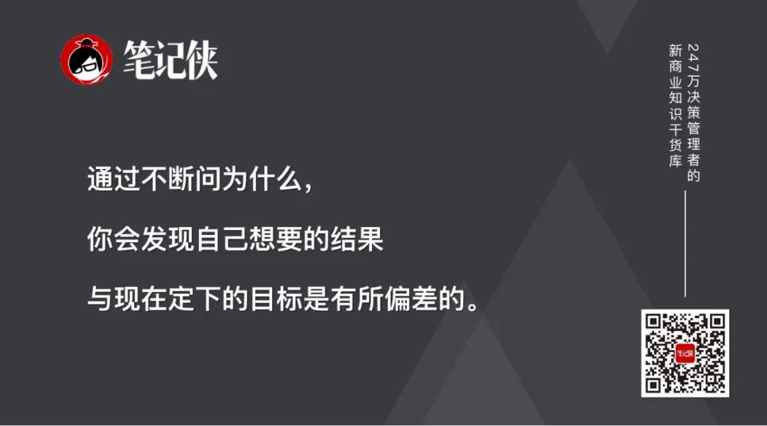 通过不断问为什么,你会发现自己想要的结果与现在定下的目标是有所偏差的。