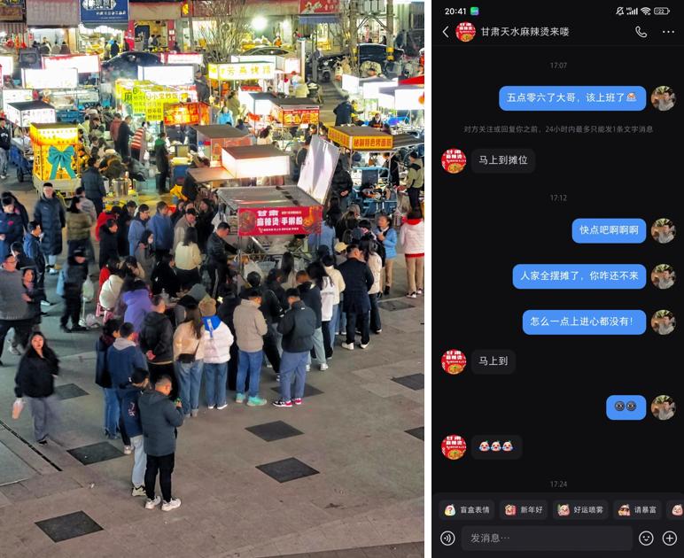 于是这个摊,一下成了整个南京市少有的正宗天水麻辣烫!全南京想打卡天水麻辣烫的人,都流向了这个夜市。消费者做攻略,发现这个夜市下午5点开始营业。为了抢早、少排队,有的人4点半就跟着摊主一起进摊排队等麻辣烫了。