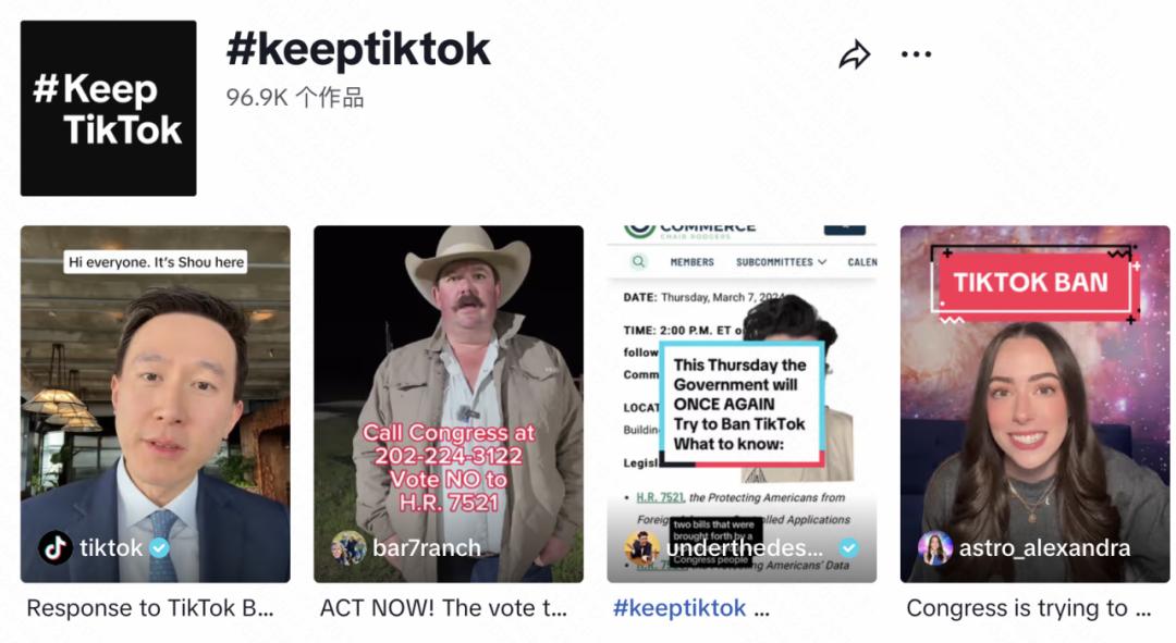 TikTok的自救,不止是在3月7日那天号召1.7亿用户向国会议员打电话要求撤销法案的弹窗推送。