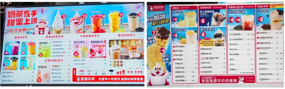 注:左图为香港蜜雪冰城菜单价;右图为内地菜单价