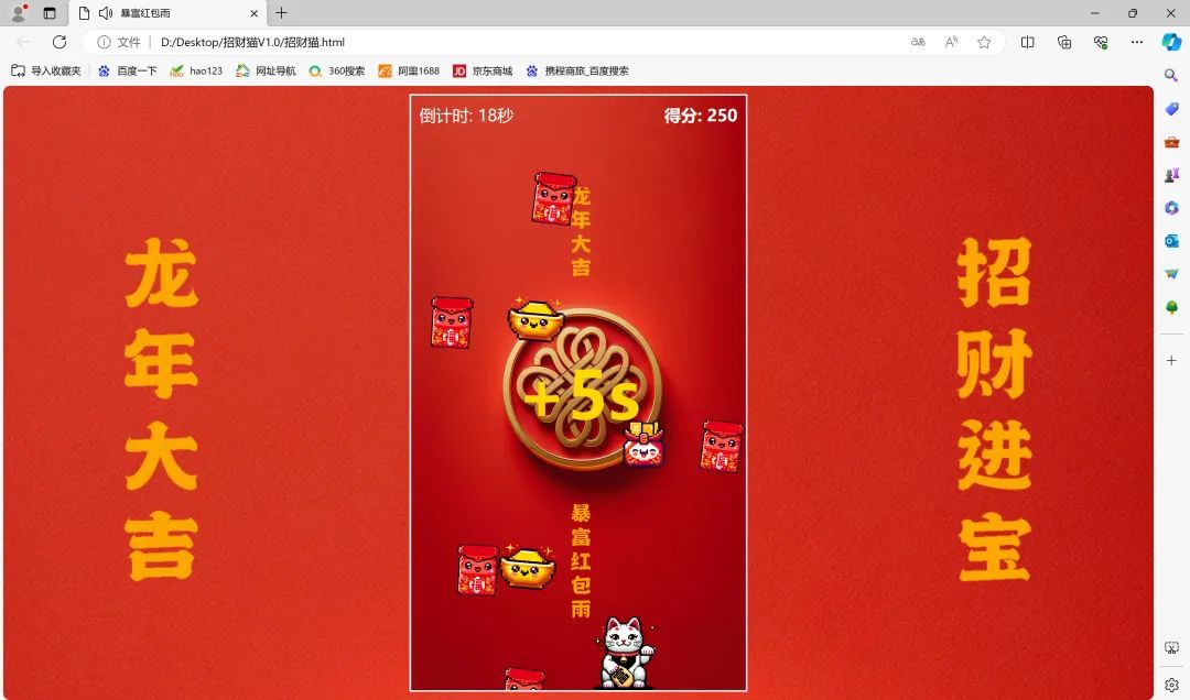 于是我开始自己做。游戏的主框架和美术素材都用 ChatGPT 生成,仅用两小时就完成了。再经过我的部署调试,很快,一款红包雨小游戏就做好了。