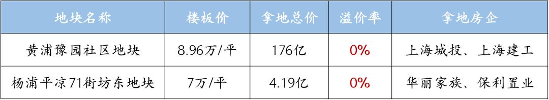 以上海黄浦豫园地块、杨浦平凉地块为例,基本都是0溢价成交。