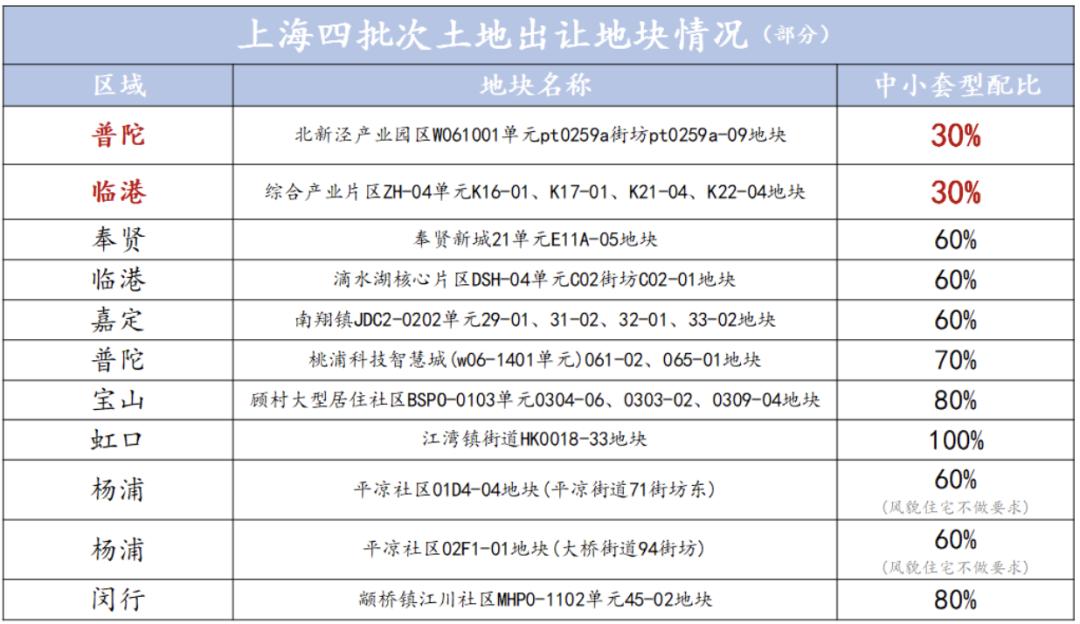 普陀区北新泾产业园区的一幅地块,对于中小套型的配比要求,已经下降到了30%。