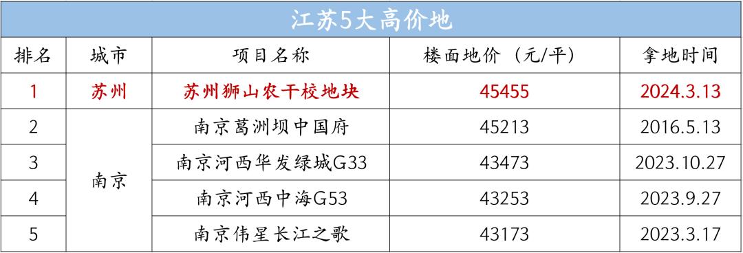 直接刷新江苏土地成交单价排行榜,成为江苏省全新地王。