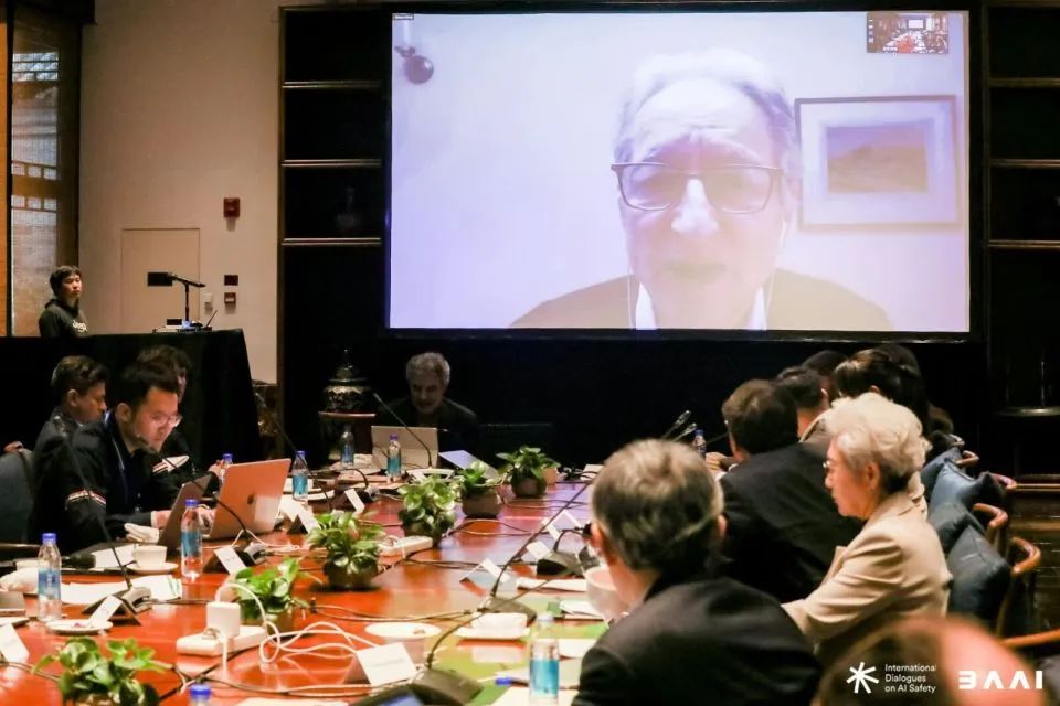 图为杰弗里·辛顿视频联线参与《北京AI安全国际共识》会议