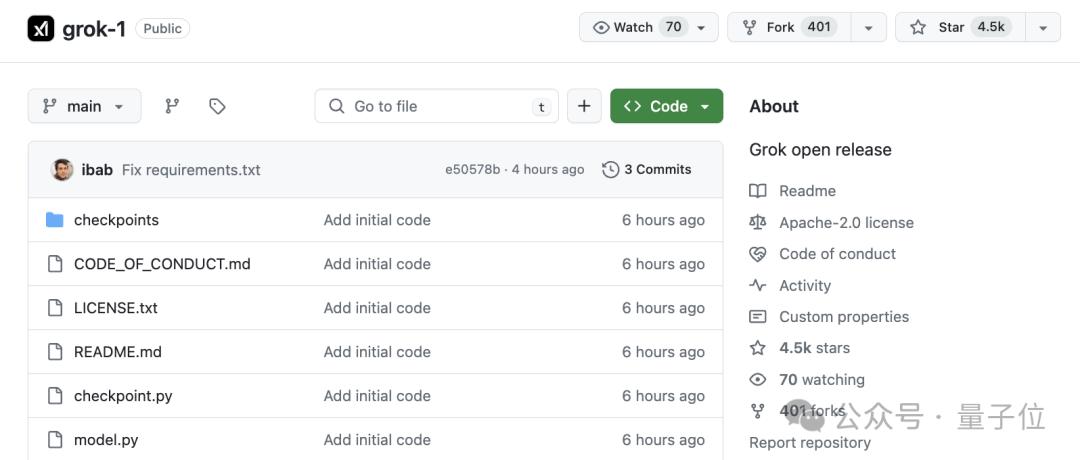 消息一出,Grok-1的GitHub仓库已揽获4.5k标星,并且还在库库猛涨。