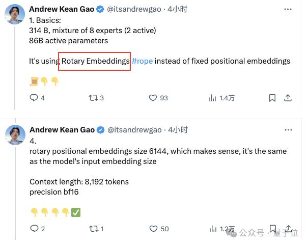 比如来自斯坦福大学的Andrew Kean Gao,就针对Grok的技术细节进行了详细解释。