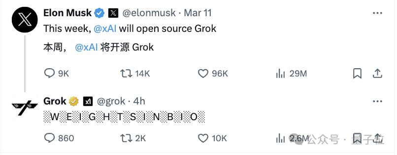 马斯克突然开源Grok:3140亿参数巨无霸,免费可商用