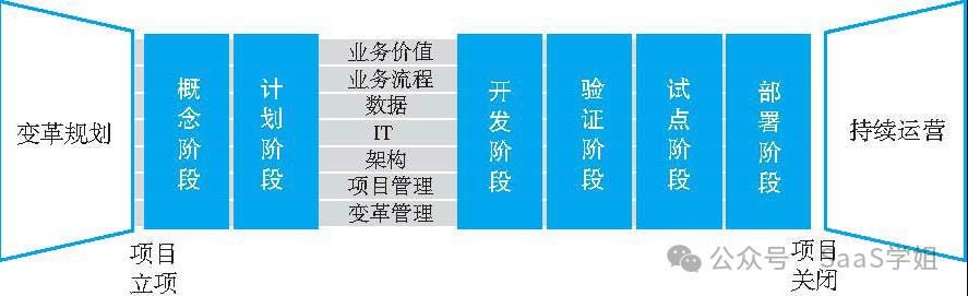 华为认为:变革如“过河”,从“此岸”到“彼岸”的过程中充满了不确定性。为了确保变革有清晰的目标和预算、明确的起止时间,保证多方参与,将变革以项目方式推进。