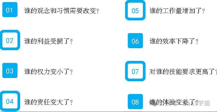 华为从八个层面来分析,分析谁是改革的受益人/损害人,尽早识别可能的阻力和动力,并采取种种措施去消除阻力和维持动力。而这些手段,没有前期的充分分析和准备是完全做不到的。