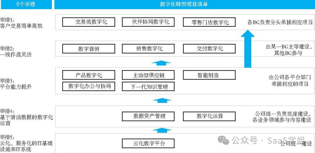 从最后的步骤回溯一下,我们也能看出战略诉求就是数字化的起点。