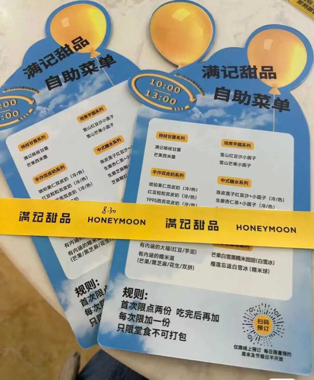 为了再次走进消费者的视线,另一方面,满记甜品决定投入自助模式的怀抱。自2023年6月起,满记开始在部分门店推出“48元随心畅吃”的甜品自助活动,只需要曾经两份甜品的价格现在就能在店里实现甜品自由。