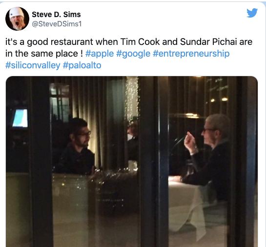 不过巨头间的竞争并非是零和博弈,大多是竞合关系。比如前文提到的两家巨头在搜索引擎上的合作,谷歌每年都要给苹果支付数十亿美元,看中的就是Safari的流量入口价值。2017年,苹果CEO蒂姆·库克和谷歌CEO桑达尔·皮查伊还被媒体拍到一起共同晚餐。