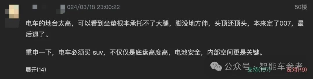 甚至有网友建议,电车还是买SUV吧,毕竟空间肯定比轿跑更大。
