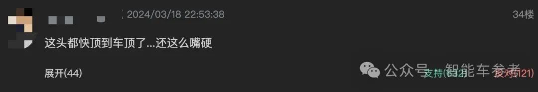 当然,还是有网友不买账,觉得澄清视频里卢总头都快顶到车顶了,想证明SU7内部空间足够并不具有说服力。