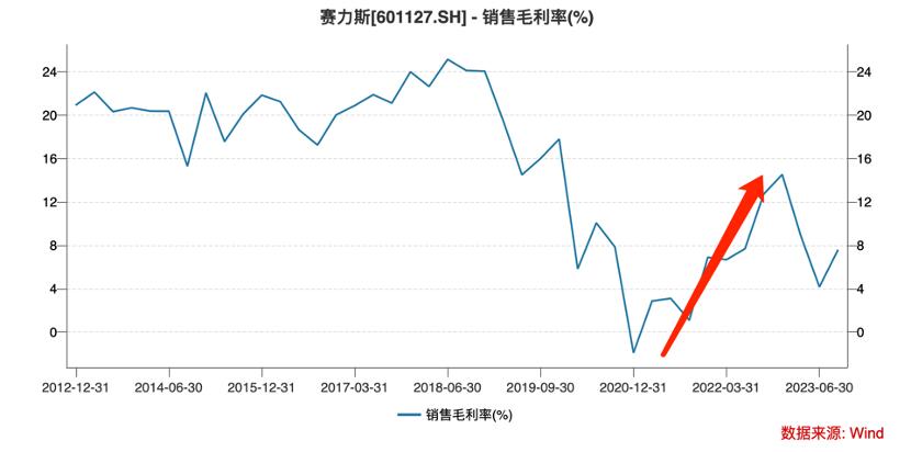 2022年正式销售问界M5之后,毛利率出现了明显改善,虽然初代问界M5在产品以及销量方面并不令人满意,但其定价还是比较慎重的(后驱标准版24.98万元,四驱标准版26.98万元)。