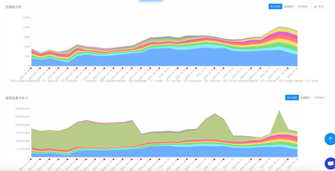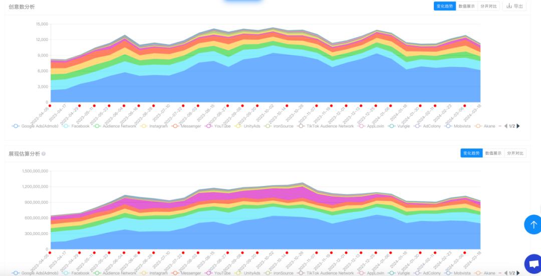 Bigo Live Android 版本过去一年广告创意和展现估算数据|数据来源:广大大