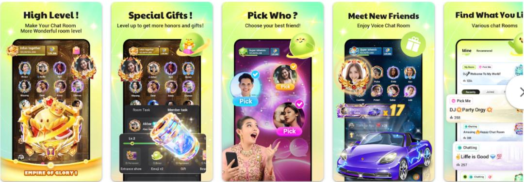 除了 Hago,欢聚集团在 2024 年 1 月又推出一款名为 infun 的语聊产品,从产品应用商店截图来看似乎也强调礼物特效和陌生人社交。