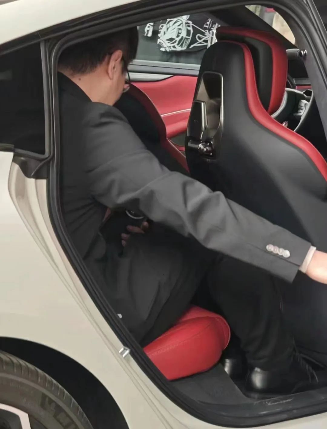 有细心的博主拍摄到卢伟冰坐进SU7后排之后的样子,从外部视角看去,他的头部空间所剩无几,腿部空间逼仄,大腿也无法获得后排坐垫的有效支撑,乘坐体验目测会打点折扣。