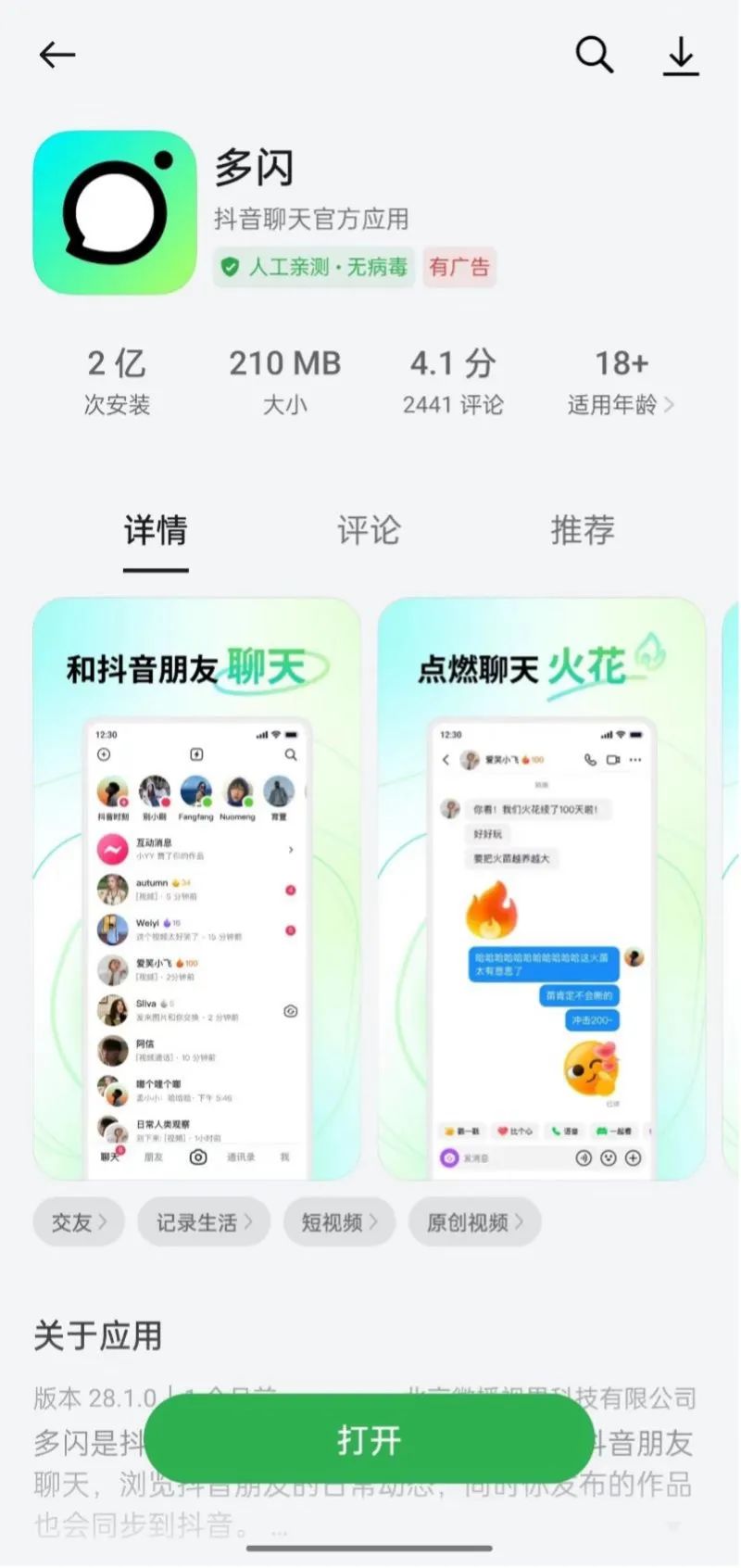 而抖音布局社交最早可以追溯到2018年,当年年末,抖音集中推出“抖音朋友”“抖信”功能。次年,抖音发布短视频社交应用“多闪”,并升级了“抖音私信”功能。