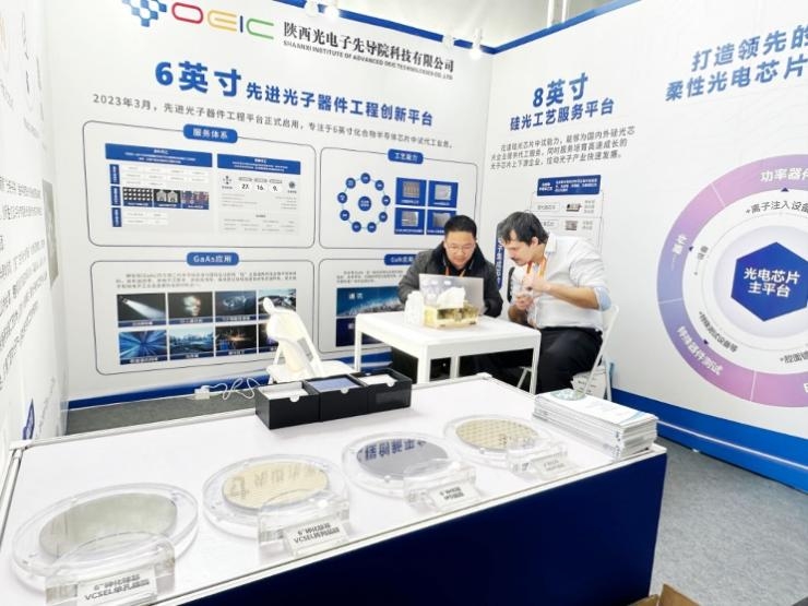 2024年慕尼黑上海光博会于3月20-22日举行,陕西光电子先导院科技有限公司携VCSEL单孔晶圆、VCSEL阵列晶圆、砷化镓(GaAs)IPD晶圆、氮化镓(GaN)HEMT晶圆4项成果亮相,展位上的各项产品吸引了众多参观者驻足、交流。