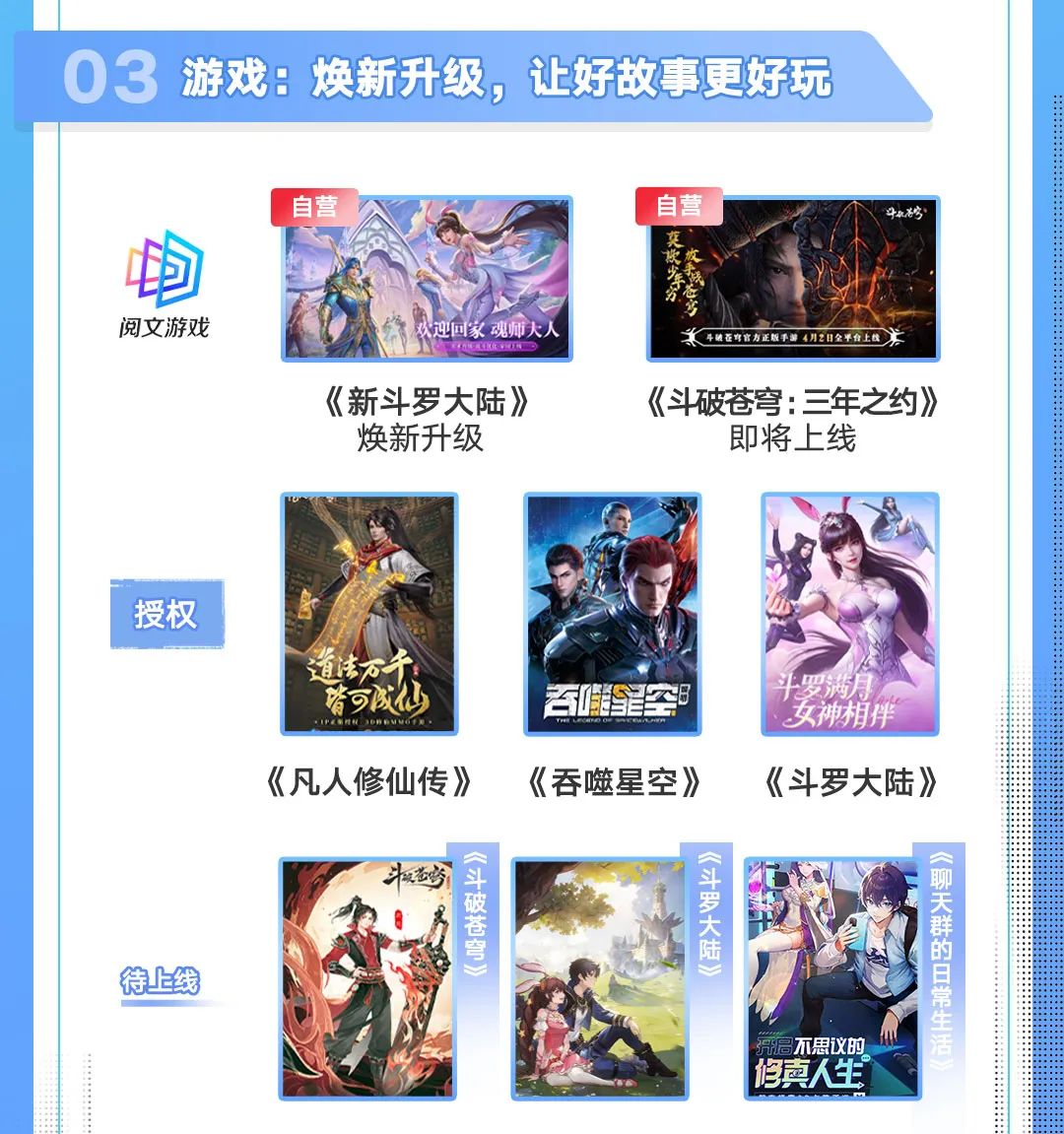 IP生态方面,除了去年的《平凡之路》《斗破苍穹》《斗罗大陆》等影漫游爆款外,在刚刚过去的刚刚过去的春节档,由阅文集团旗下新丽电影、阅文影视共同出品的电影《热辣滚烫》勇夺票房冠军,总票房超34亿。此外,获得2023阅文全球华语IP盛典“年度最受期待改编IP”的《庆余年》第二季预约数已突破1200万,成为全网首部预约破千万的剧集。而在腾讯视频最受期待榜中,阅文还有《大奉打更人》《与凤行》《玫瑰故事》等作品位居前列。《与凤行》于3月18日上线播出后,25小时39分钟热度破30000,创腾讯视频最快进爆款俱乐部剧集纪录,实现了真正意义上的“开播即爆款”。
