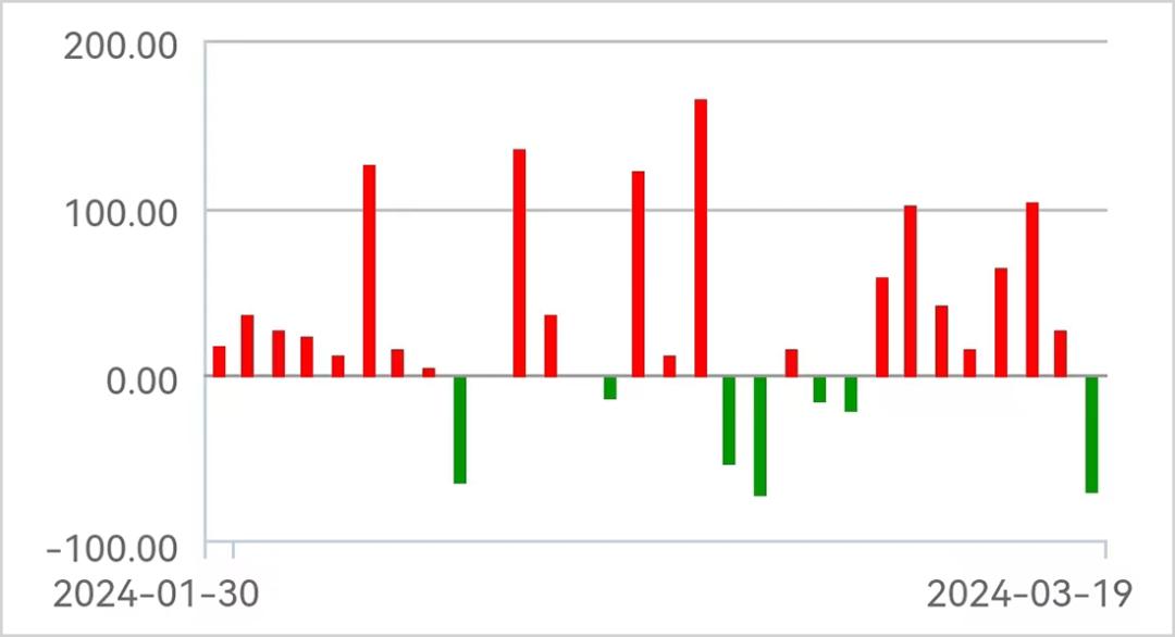 2024年开始,北向态度悄然转变。截至3月20日,北向累计净流入A股720亿,大幅超过2023年全年的437亿,期间更是有6个交易日单日爆买超百亿。