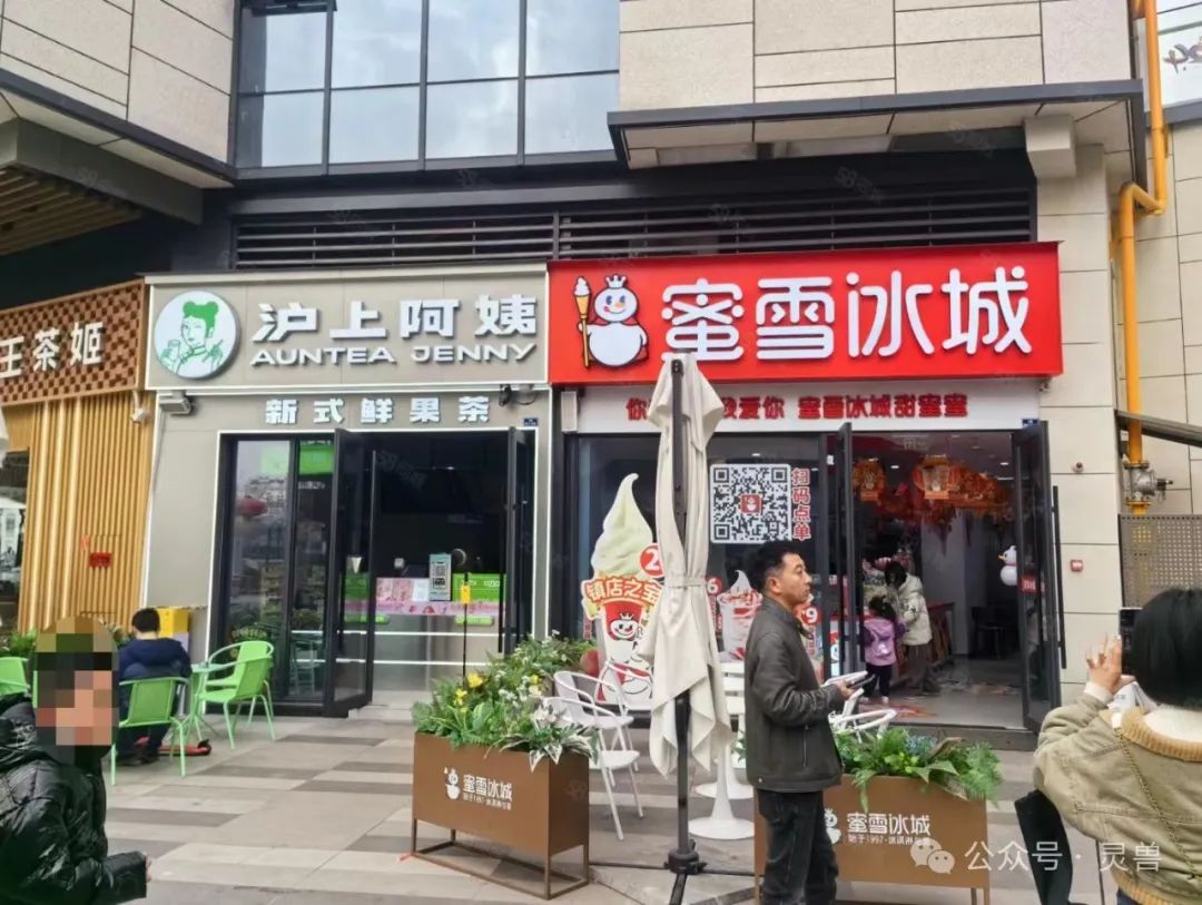 还有蜜雪冰城,当其在疯狂扩张开店7000家后就陷入瓶颈,于是,蜜雪冰城取消了区域保护制度之余,结果是加盟店开得越发密集。在南京的夫子庙景区,方圆八百米内同时有8家蜜雪冰城在抢生意。
