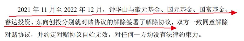 2021年11月至2022年12月,钟华山与上述投资者分别就对赌协议的解除签署了解除协议,双方一致同意解除对赌协议。