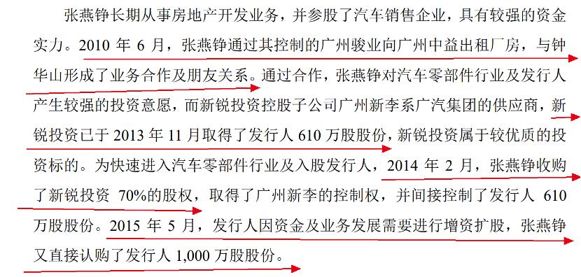 据了解,早在2010年6月,张燕铮通过其控制的广州骏业向大昌科技子公司广州中益出租厂房时,就与钟华山形成了业务合作及朋友关系。