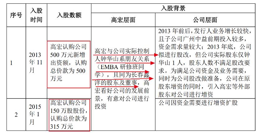 就在颜惠莲母亲、叔父解除代持的2013年,高宏以500万元认购了公司500万元新增出资额;2015年1月,高宏又以315万元认购了公司150万股股份。